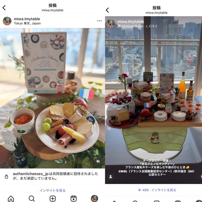 素敵なチーズのディスプレイとその様子をSNSでご紹介いただきました。セミナーでは、ご自身のフランス滞在で訪れたチーズ工房などの情報も紹介いただき、充実したコンテンツでした。