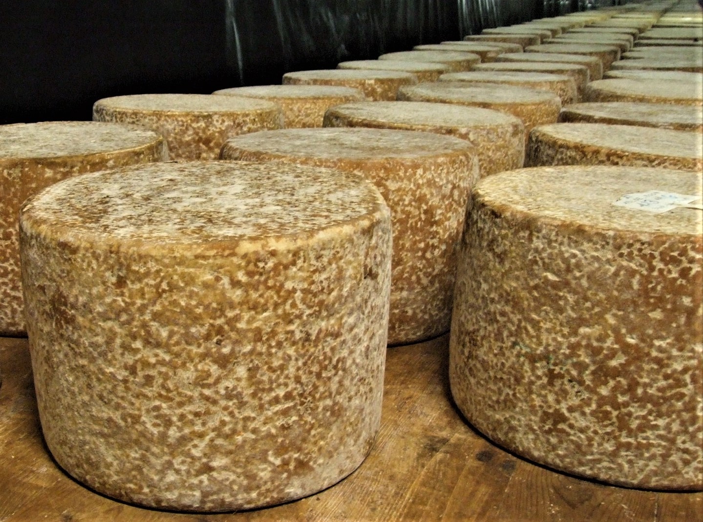 イギリスでは17世紀からロンドンへの大規模な人口流入が起こり、富裕層が増えると良質なチーズへの需要が高まります。それに応えるため、商業主義農業と呼ばれる大規模な酪農家が現れチーズの量産を始めます。そして、そのチーズを専門に取引するチーズ商が登場するのです。しかし、当時はイングランド中部のチェシャーから大消費地ロンドンまでチーズを運ぶと14日もかかった。中型で表面積の大きい円盤型のチーズであれば、輸送中に乾燥し重量が目減りします。チーズを重量で取引きするチーズ商はそのリのスクを軽減するため生産者にチーズをより大型で表面積の小さい円筒型にするように求めたのです。でも大きな円筒型にすれば表面に擦り込んだ塩分の浸透に時間がかかり、腐敗のリスクにもさらされます。あれやこれやで、生産者側の試行錯誤の時代が百年以上も続くのですが、やがてカード(乳を凝固させたもの)を熱したホエイに浸して水分の排出を促し、当時開発された強力なプレス器で水分を絞り出すとい方法で一定の成果を収め円筒形のチーズは次第に大きくなっていくのです。