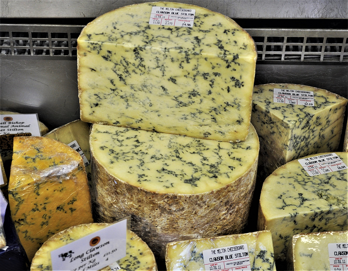 このチーズの名称はこれまでのように「生産地名」ではなく、このチーズを広めた村の名がチーズ名になったというのが異色なのです。この村はロンドンから北に向かう街道筋にあり1730年頃、この村のBell Innという旅籠屋(はたごや)が近在の農場で造られていたブルー・チーズで旅客をもてなしたところ評判になりロンドンでもスチルトン村のチーズとして知られるようになる。ロックフォールやゴルゴンゾーラ等のチーズ名は生産地名からきているけれど、このチーズの名は消費地というのが異色なのです。