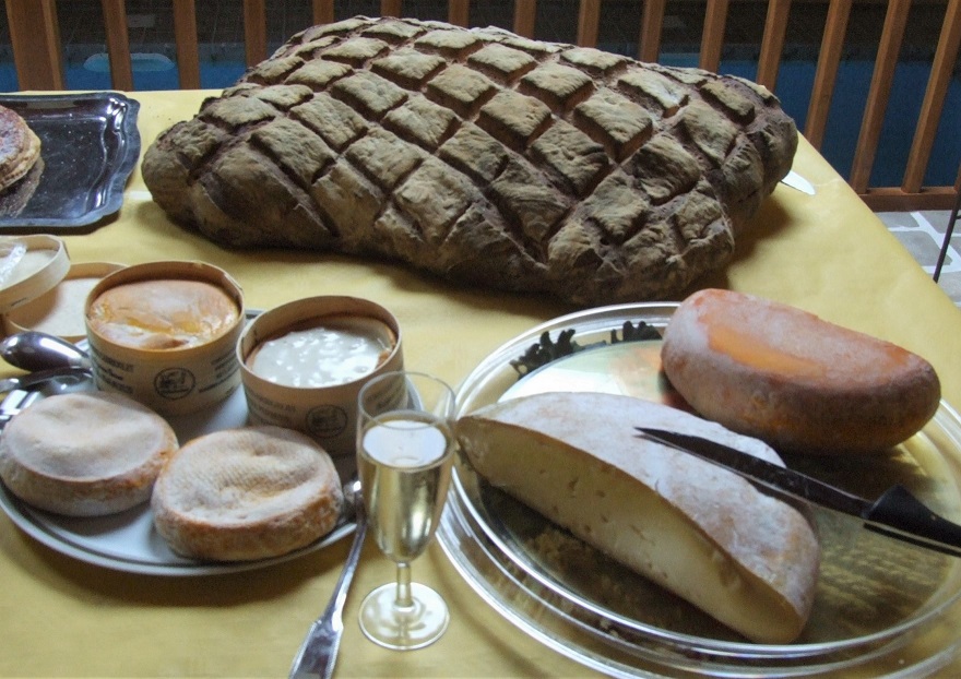 見学を終えて試食室に入ると5~6種類ほどの見た事もないチーズが並んでいるのだが、その付け合わせには岩石のような一抱えもありそうな巨大なパンが背後に鎮座している。そんな状況の中で、今回はすべてが初めてみるチーズなので写真を撮るのが忙しく、チーズの味は全く覚えていない。