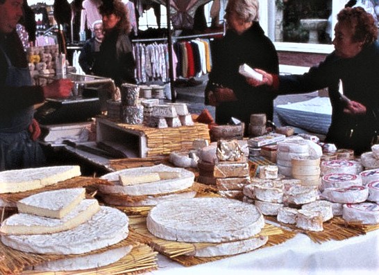 写真②は1990年代に撮った少々古いものなので、当時はまだチーズは麦わらの上に陳列されていました。私たちはブリといえば表面が真っ白なカビに覆われているものを想像するけれど、朝市に陳列されているブリを見ると、現地の人は表面の皮目に茶色の網目模様が少し出てきた過熟気味のものがお好みの様でした。