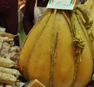 そこで話をパスタ・フィラータに戻すと、上のチーズ作りの工程でカードがマット状になったところで、カードをブロック状に切って積み重ね、保温をしながらしばらく置きます。するとカードの中の乳酸菌が更に繁殖し酸度(酸っぱさ)を高めていきます。そうすると、カードは弾力を増して鶏肉のささ身状態になるのです。このような状態になったら、カードを細かく切り熱湯を注いでかき混ぜるとカードは溶けて糸を引くようになります。カードがすっかり溶けたらお湯を捨ててさらに練るとつきたてのお餅状態になるのです。これを一定の大きさに丸くちぎって冷水で冷やせばモッツアレラのできあがりです。モッツアレッラの語源はmozzare(切り取る、ちぎる)から来ているのです。イタリアにはこの他に以下の同系のチーズがあります。ひょうたん型のカッチョ・カヴァロ、様々な形と大きさのプロヴォローネ、太い角材型のラグザーノなどです。カッチョ・カヴァロは日本でも作られていますね。ただし糸状に裂ける性質は時間と共になくなっていくので、熟成させたチーズはこの性質は失われてしまいます。