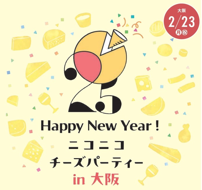 ニコニコの目玉☆25種類の国産&輸入チーズはもちろん、ニューイヤーパーティーだけのワイン&お料理もお楽しみいただきます。